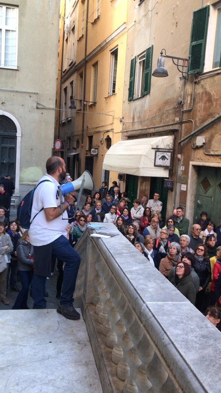 Il percorso si è snodato da piazza del Duomo attraverso Palazzo Gavotti, via Pia, piazzetta della Maddalena, vico Spinola, Chiesa di s. Andrea, via Paleocapa, Torretta, ponte Sisto IV, s. Giacomo, vecchie mura di via Famagosta, teatro Chiabrera per finire in Sala Cappa alla Città dei Papi. Nelle diverse soste lungo il percorso i soci Sanguineti, Cordi' e Salvatore hanno spiegato la storia e l'arte dei vari luoghi.