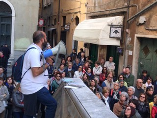 Il percorso si è snodato da piazza del Duomo attraverso Palazzo Gavotti, via Pia, piazzetta della Maddalena, vico Spinola, Chiesa di s. Andrea, via Paleocapa, Torretta, ponte Sisto IV, s. Giacomo, vecchie mura di via Famagosta, teatro Chiabrera per finire in Sala Cappa alla Città dei Papi. Nelle diverse soste lungo il percorso i soci Sanguineti, Cordi' e Salvatore hanno spiegato la storia e l'arte dei vari luoghi.