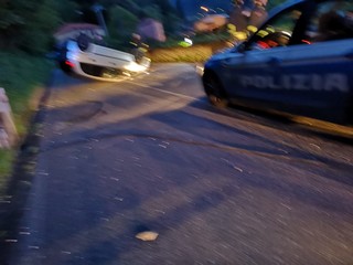 Attimi di paura questa mattina intorno alle ore 6 per un'automobile cappottata in località San Bernardo in Valle (zona Santuario) a Savona.