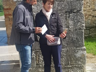 Ieri il camminatore/artista Sergio Giusto, impegnato in una lunga marcia sul cammino di San Martino, che lo sta portando dall’Ungheria ad Albenga sulle orme del Santo, ha raggiunto la storica città di Aquileia.