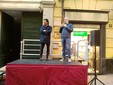 La parola passa poi a Massimo Amato: “Se oggi siamo qui su un palco all’aperto, a parlare a tutti i passanti, è perché 75 anni fa abbiamo vinto una guerra, sconfiggendo un regime. Quel regime nasceva da una crisi economica che ha portato al sorgere di nazionalismi e xenofobia. Nella vita faccio il professore di storia e non posso fare a meno di pensare al passato. Oggi siamo di fronte a politiche neoliberiste che stanno sfasciando l’Europa. La Sinistra sa come cambiare l’Unione Europea e perché farlo: vogliamo cambiare i meccanismi alla base e si potrà ancora uscire dall’empasse grazie alla cooperazione fra popoli e senza guerre fra poveri”.