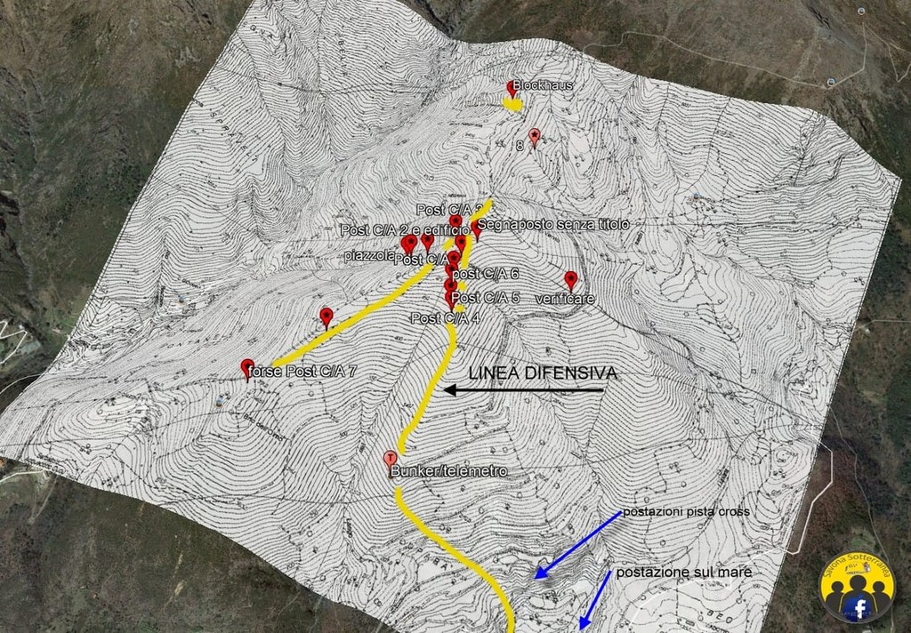 Ricordo che anche lo stesso telemetro a suo tempo era interamente foderato con pietre del posto tanto da nascondere le parti in cemento. Comprendo che possano essere molto facilmente confuse anche con attuali postazioni per cacciatori, che normalmente sono poco rifinite e hanno una dimensione minore, ma ci sono molti altri casi, dove ho trovato queste postazioni campestri, come Albisola, Cogoleto ecc... contornate anche da lunghi scavi in trincea. Inoltre ritengo chela mia ipotesi sia valida anche a testimonianza che si trovano in linea con il telemetro e a scendere con due postazioni situate nei pressi della pista da cross fino arrivare al mare a quota zero dove era ubicata un altra postazione.