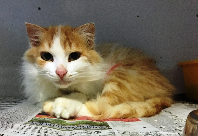 Una dolcissima gattina a pelo lungo era stata trovata, quasi sicuramente abbandonata, con un grosso ascesso alla bocca, nei boschi di San Bartolomeo, sopra Savona e consegnata alle cure dei volontari della Protezione Animali.