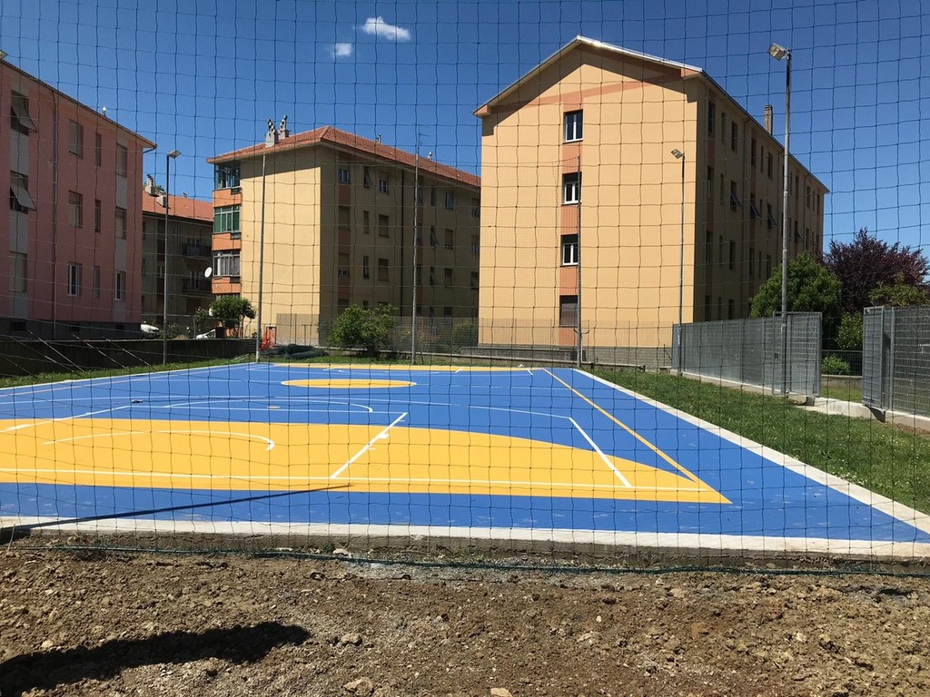 L'intervento si è concentrato sulla sostituzione della recinzione esistente in quanto vetusta e danneggiata, nonché sull'installazione di una nuova rete rete para-palloni, a protezione dell'adiacente via Arpione, previa la posa di nuovi pali di altezza 10 metri. Ma non è tutto. La riqualificazione ha previsto anche il rifacimento della pavimentazione.