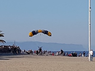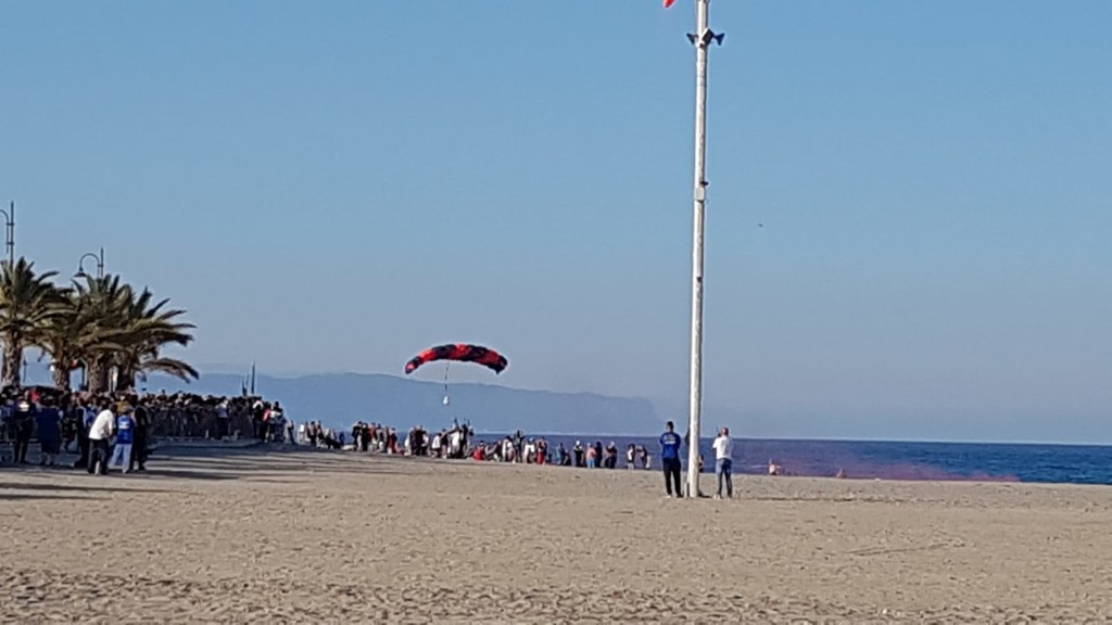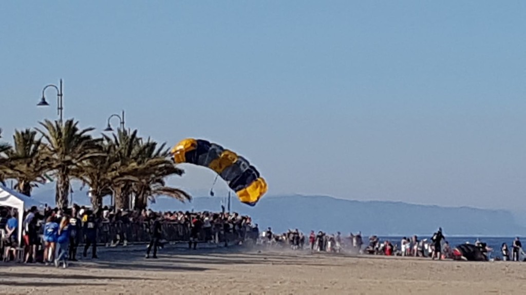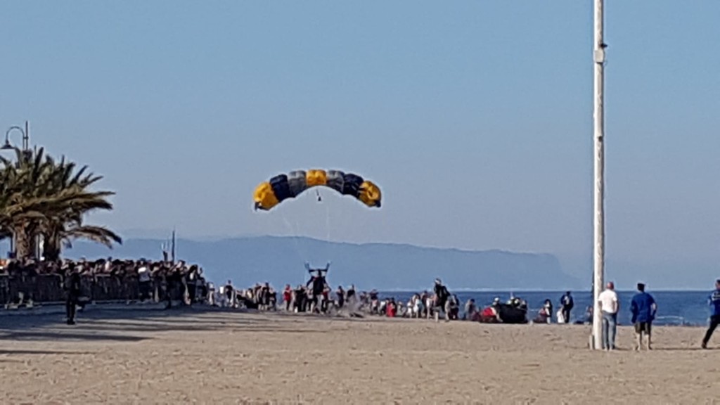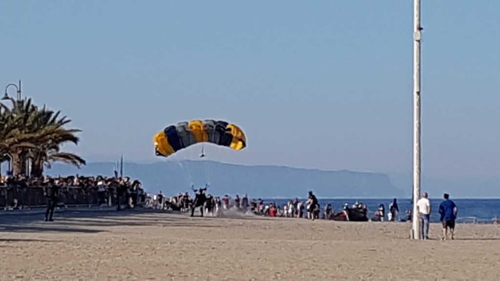 Dalle 18, il momento più atteso: il lancio dei paracadutisti, con l'introduzione di due grandi novità; la prima è stata rappresentata dall'adozione delle tute alari, la seconda è stata il primo ammaraggio programmato di quattro paracadutisti opportunamente equipaggiati.