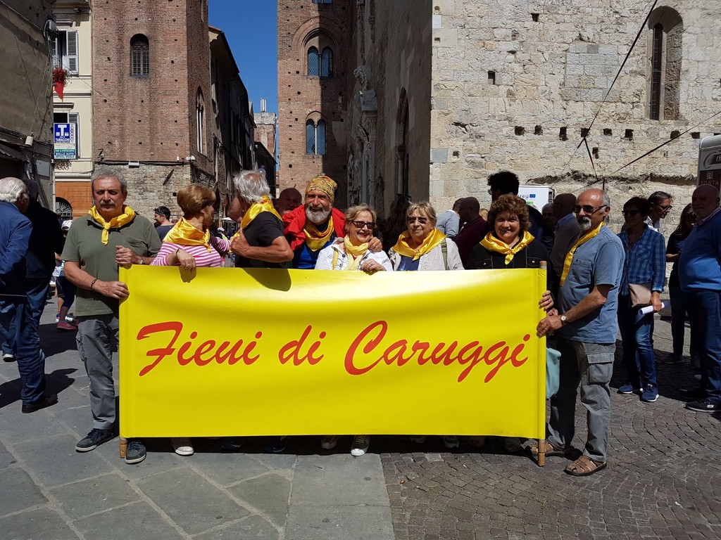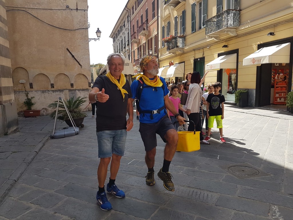 È arrivato alle 10:50 in piazza San Michele il “pellegrino” Sergio Giusto dopo oltre 1.200 km percorsi a piedi lungo la Via Sancti Martini dall’Ungheria fino ad Albenga insieme a Gianfranco Radini detto "Feroce" dei Fieui di Caruggi.