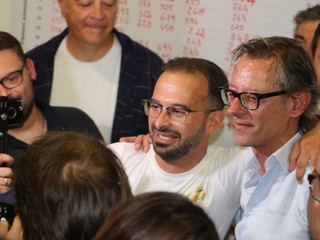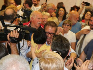 Il primo ad esultare Diego Distilo che fino a quel momento è stato teso e non si è voluto pronunciare: “Ormai ce l’abbiamo fatta! Abbiamo vinto” urla abbracciando Riccardo Tomatis un po’ incredulo, in attesa ancora dei dati ufficiali.