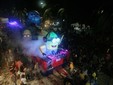 Il corteo, che prenderà il via alle 22 e attraverserà le vie del centro, sarà arricchito dalla presenza di un fantasioso carosello di personaggi sui trampoli e da gruppi di streghe che danzeranno a ritmi incalzanti. Il corteo percorrerà il centro storico, il lungomare, e alle 23 raggiungerà la spiaggia sotto il molo Francheville dove la strega sarà bruciata. Alla stessa ora nel cielo si alzeranno le luci e gli scoppiettii dello spettacolo pirotecnico. Creazioni originali con forme a fontana, a sfera e ad effetto pioggia si incroceranno nel cielo formando un magico gioco di luci colorate, una scoppiettante scenografia che creerà un'atmosfera avvolgente. Luce, forma, colore e ritmo comporranno uno spettacolo originale e unico.