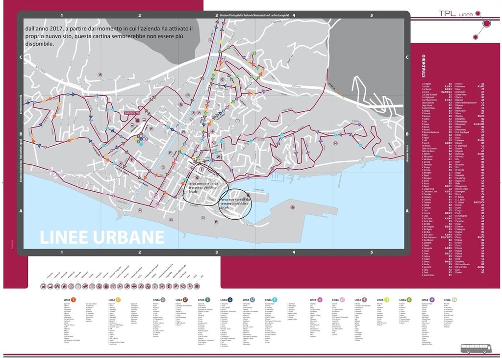 "Piano della Mobilità" di TPL. Ecco la disamina condotta dagli assessori della Lega di Savona sul loro blog: "Dall'analisi dei flussi veicolari in entrata e in uscita da Savona, si è cercato di comprendere quali possano essere le più probabili cause degli elevati volumi di traffico che interessano la conurbazione savonese. Sono state fatte alcune ricerche e, tra il materiale recuperato, è balzata all’attenzione una mappa di tutte le linee urbane, scaricata direttamente dal sito di TPL. E' doveroso evidenziare che, dall'anno 2017, a partire dal momento in cui l'azienda ha attivato il proprio nuovo sito, tale cartina sembrerebbe non essere più disponibile.