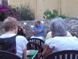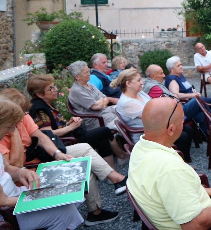 Di fronte ad un pubblico numeroso e attento, che ha fremito il giardino in ogni ordine di posti, è stato presentato il libro "Libereso Guglielmi - Diario di un giardiniere anarchico" dedicato ad una figura straordinaria come quella del "giardiniere di Calvino". Giulia Rosso e Lucia Scalia hanno introdotto Claudio Porchia, il giornalista ed amico che lo ha accompagnato negli ultimi dieci anni di attività e che ha raccontato episodi della vita affascinante di Libereso. Una presentazione interessante e arricchita dalla testimonianza di una coppia di residenti a san Giacomo, Nicolino Folco e Lina Martin, presenti fra il pubblico e che avevano conosciuto Libereso durante il suo soggiorno in Inghilterra.