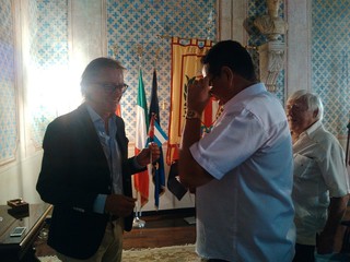 Accanto al sindaco, la consigliera Emanuela Guerra (per una singolare coincidenza è omonima dell'ospite Guerra Rosabal) ha donato al delegato ICAP alcuni libri sulla storia di Albenga. La consigliera Ilaria Calleri, con delega alla tutela e valorizzazione dei prodotti del territorio, ha invece descritto all'ospite una carrellata delle tipicità ed eccellenze ingaune.