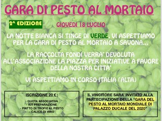 Questa volta la raccolta fondi avverrà mediante una gara vera e propria, ovvero una competizione di “Pesto al mortaio”, organizzata in concomitanza della notte bianca di Savona del 18 luglio prossimo.