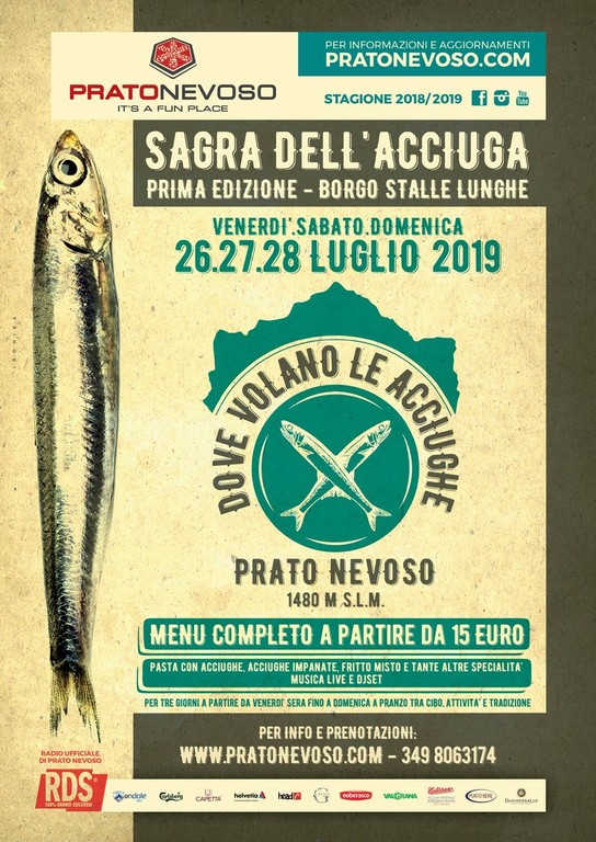 Come nelle pagine del bel libro di Nico Orengo “Il salto dell’acciuga” l’ultimo weekend di luglio a Prato Nevoso “il mondo marinaro si fonde a quello contadino” con questo “pesce di montagna” che si conserva nel tempo per una tre giorni all’insegna innanzitutto della buona cucina. Tre giorni dedicati per intero alla prima edizione della “Sagra dell’acciuga”. L’appuntamento è per venerdì 26 luglio (e per tutto il week end) al borgo Stalle Lunghe che per l’occasione si trasformerà in una sorta di borgo marinaro tra allestimenti dedicati e bancarelle dove questo piccolo pesce che ha fatto la fortuna di tanti cuneesi sarà l’autentico protagonista.