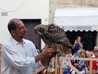 Ore 19.30: inizio spettacoli in Piazza San Michele con esibizione dei rapaci