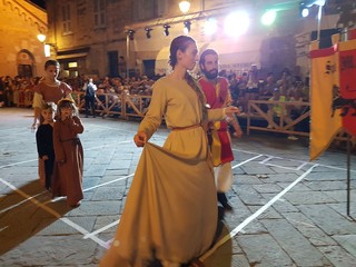 Ore 20.15: in piazza San Michele inizieranno i giochi intervallati da esibizioni di combattimenti, musici, giocolieri, mangiafuoco (ore 20.15: Abbatti le torri - ore 21.45: La famiglia medievale - ore 22.20: Tiro alla fune).