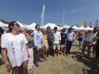 A presenziare all'evento nel mare albissolese il presidente delle Regione Giovanni Toti e l'assessore regionale allo sport e alla cultura Ilaria Cavo: