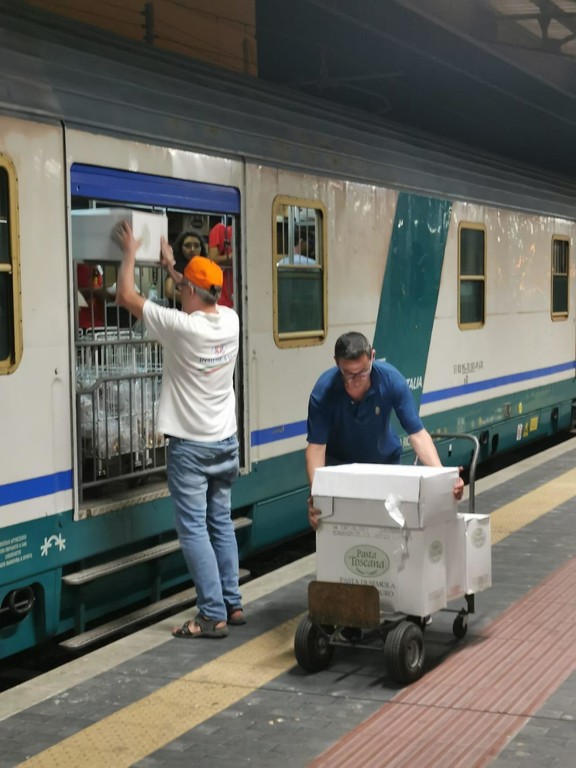 I volontari dell’Unione Regionale Cuochi Liguri, in collaborazione con l’associazione Noi x Voi, facente parte della Consulta del Volontariato di Finale Ligure, si sono organizzati per fare avere queste risorse consegnandole sul treno mentre era in sosta a Ventimiglia.
