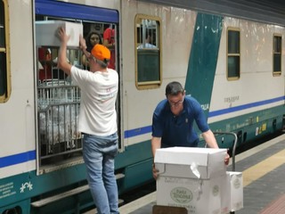 I volontari dell’Unione Regionale Cuochi Liguri, in collaborazione con l’associazione Noi x Voi, facente parte della Consulta del Volontariato di Finale Ligure, si sono organizzati per fare avere queste risorse consegnandole sul treno mentre era in sosta a Ventimiglia.