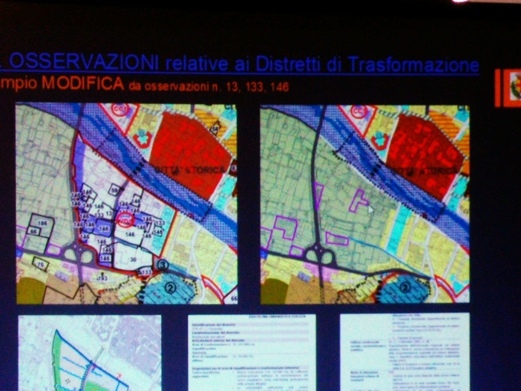 Pochissime e minimali le osservazioni sul centro storico, più che altro legate a una maggiore flessibilità nei cambi di destinazione d'uso dei piani terreni al fine di stimolare il commercio. Inizialmente era previsto un no secco per le attività commerciali medio-grandi (oltre 250 mq) nel centro, ma questo aspetto è stato abrogato in quanto va contro la Direttiva Bolkestein.