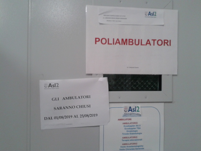 Chiuso per ferie al 1 al 25 agosto l'ambulatorio di diabetologia dell'ospedale "San Giuseppe" di Cairo Montenotte. La segnalazione arriva da un nostro lettore.