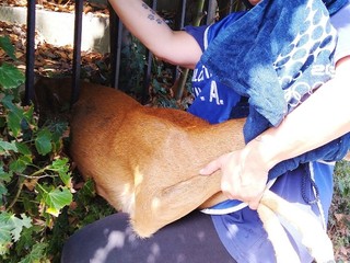 Il giovane animale, alle prese con un "combattimento" tipico della stagione degli amori, è stato soccorso dalle volontarie ENPA