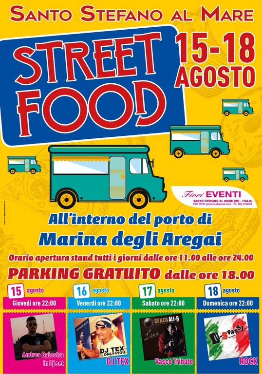 Nella settimana di Ferragosto, a Santo Stefano al Mare, è protagonista lo Street Food, ottima occasione per divertirsi e gustare nuovi piatti con il top del cibo Nazionale e Internazionale, accompagnati da fresche bibite e dalle migliori birre artigianali.