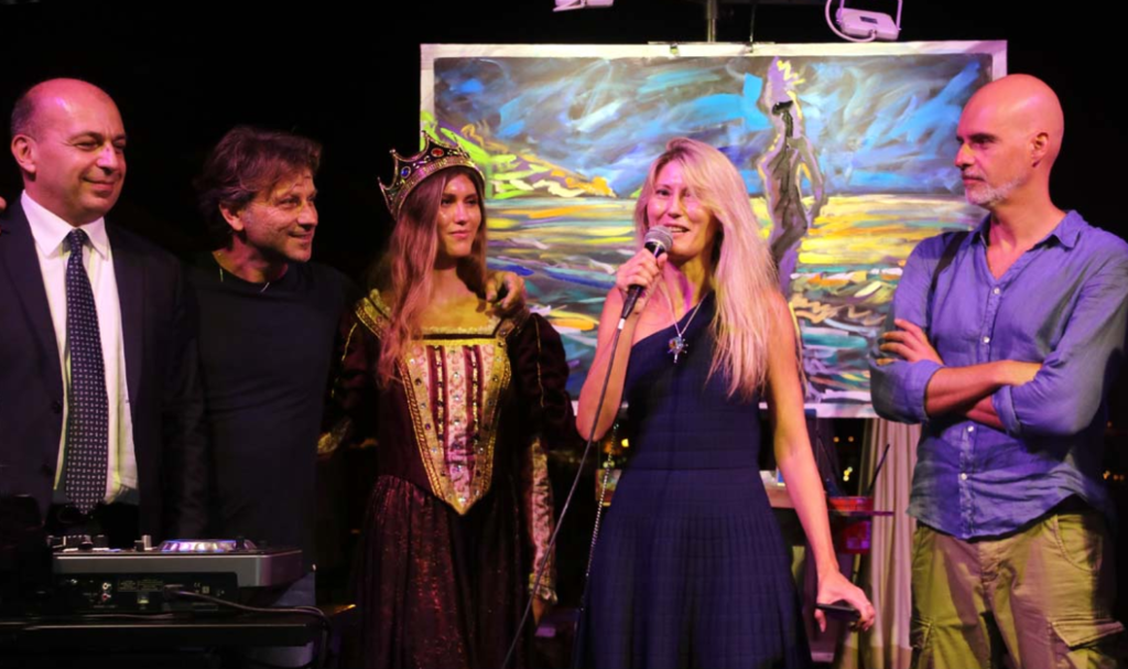 La sera di domenica si è voluto dare un suggestivo spettacolo offrendo ai commensali a cena sulla spiaggia del Grand Hotel la performance del pittore Rudy Mas che, accompagnato dalla musica di Gabry Sax, ha realizzato in diretta davanti ai presenti un quadro da una delle foto che ritraevano Adelasia. Tutto preceduto dalla altra musica del M° Luca Griotto e della cantante Greta Mascheretti.