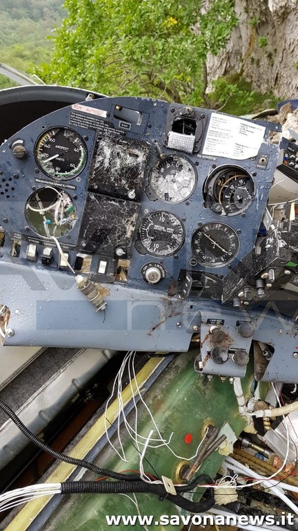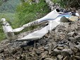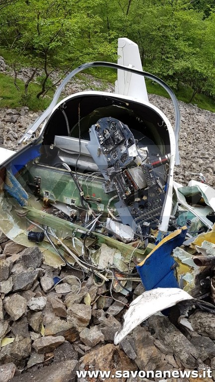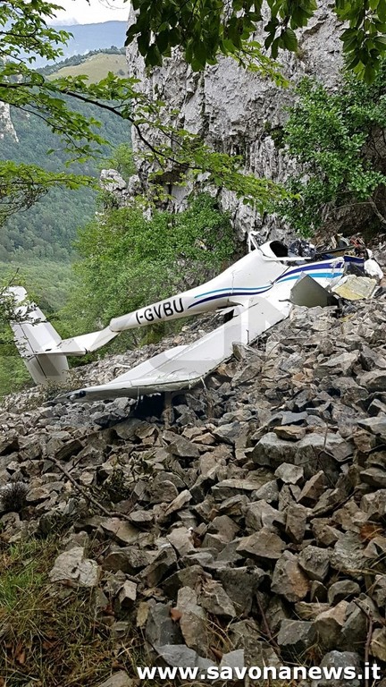 Il relitto dell'ultraleggero distrutto sulle rocce della montagna: nell'incidente hanno perso la vita Lorenzo Castaldi e Andrea Giussani.