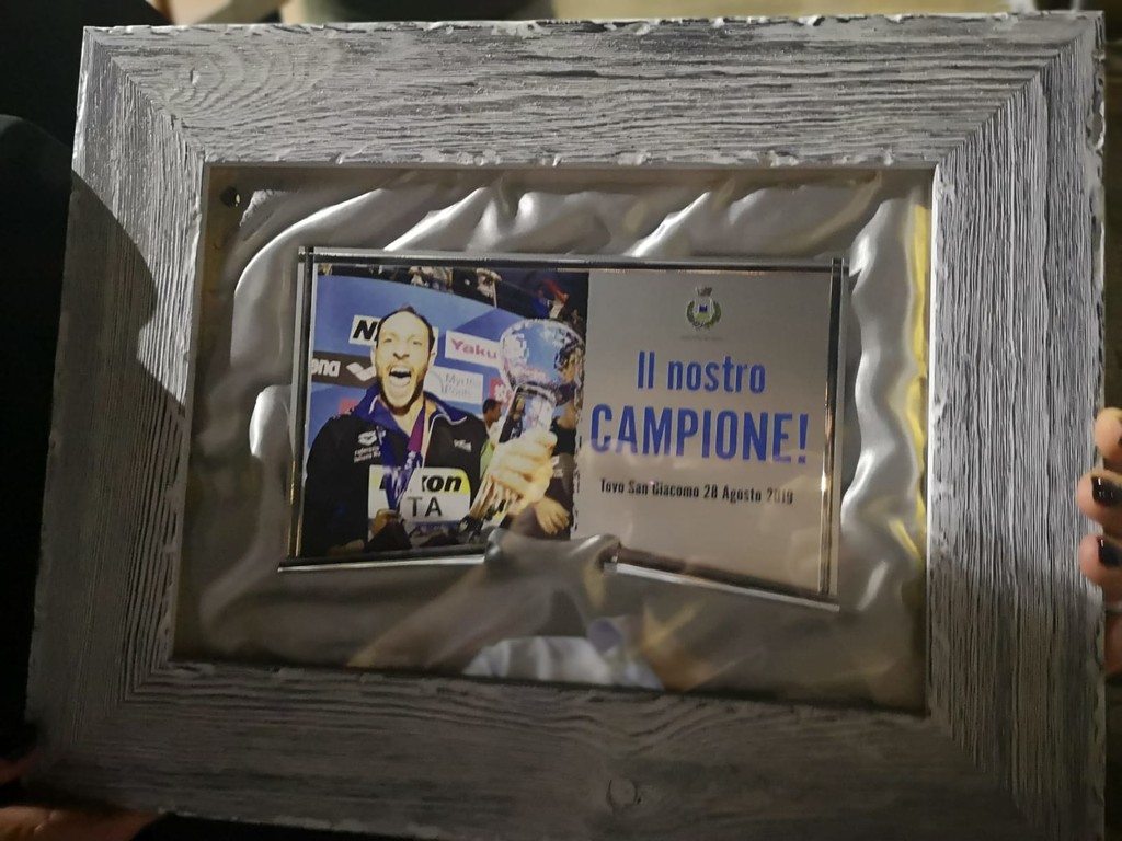 Il caloroso abbraccio di tutta una comunità per il suo campione: questa sera Tovo San Giacomo ha dedicato una serata d’onore a Matteo Aicardi, il centroboa della Nazionale italiana e della Pro Recco, laureatosi di recente campione del mondo proprio con il Settebello. In piazza Don Zunino è stato infatti festeggiato l’oro conquistato dagli azzurri nei recenti Campionati del Mondo di Gwangju 2019, in Corea del Sud, il secondo personale per il pallanuotista tovese dopo quello conquistato a Shanghai nel 2011.