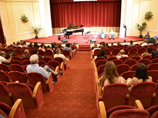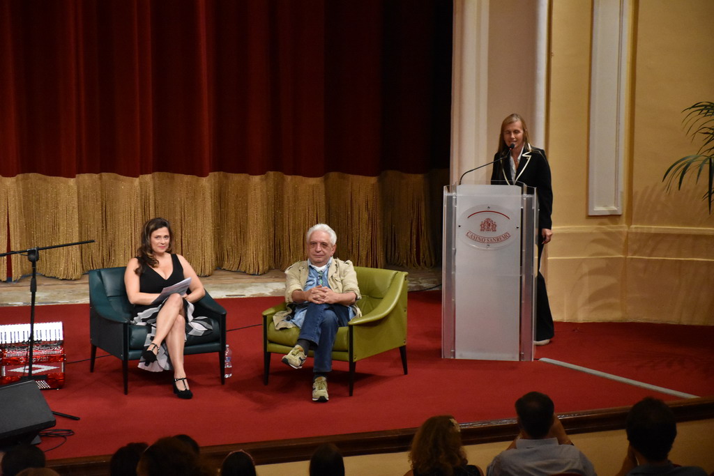 E' stata inaugurata oggi pomeriggio, al Teatro dell'Opera e nel Foyer del Casinò di Sanremo, la mostra di Angela Perri 'La musica che gira intorno', che proseguirà fino al 22 settembre.