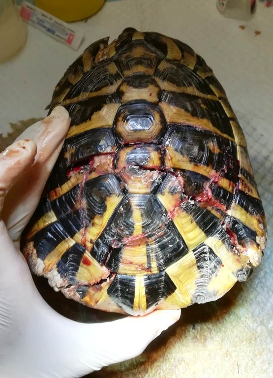 L’impatto le ha frantumato il carapace in diversi parti e si è reso necessario il trasporto in un centro specializzato del Piemonte dove, con l’ausilio di radiografie ed altri controlli e con tecniche particolari è stato saldato; se si salverà verrà attivata la procedura per l’affidamento a privati, previa autorizzazione dei Carabinieri Forestali.