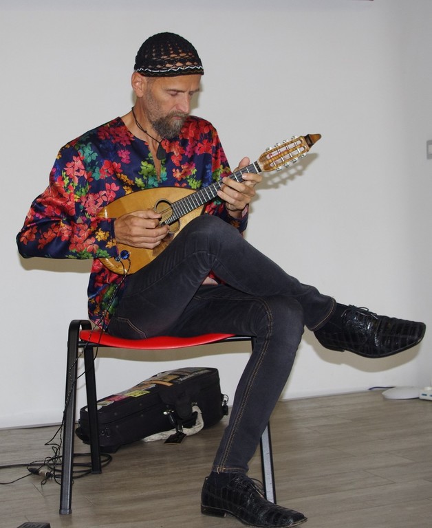 Prima della conferenza il noto pittore Alexandre Mora Sverzut ha omaggiato il maestro Aonzo con un quadro che lo ritrae mentre suona il mandolino.