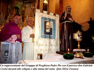 Lo speciale contenitore è stato posizionato davanti all'altare, di fianco alla statua del Santo e rimane a disposizione dei fedeli per la venerazione. Sarà ad Alassio fino a lunedì 30 settembre, quando, dopo una solenne Messa concelebrata da tutti i parroci di Alassio, presieduta da don Gabriele Corini e con predica del parroco cappuccino don Tomasz, riprenderà la strada di ritorno a San Giovanni Rotondo, luogo natale del Santo.