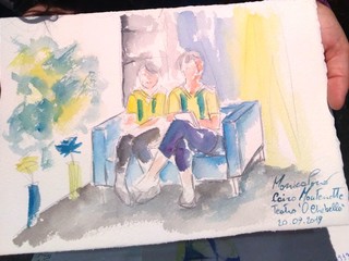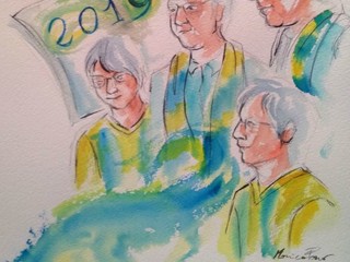 "Abbiamo 'fotografato' l'evento con i nostri sketch, dipinti dal vivo ad acquerello - spiegano alla nostra redazione le due artiste - La serata è andata avanti fino alla mezzanotte. C'era moltissima gente tra cui la partecipazione di tanti sportivi della Cairese di oggi e di ieri".