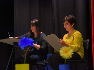 Lo sport unito all'arte. Venerdì sera durante la presentazione (presso il Teatro "Osvaldo Chebello di Cairo Montenotte) del diario "Giallo Blu", scritto per celebrare il centenario della Cairese dal cronista sportivo Daniele Siri, le artiste valbomidesi Laura Di Fonzo e Monica Porro hanno immortalato l'evento con i loro disegni.