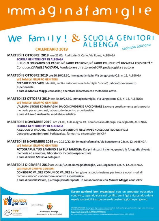 - WE FAMILY! progetto gruppo genitori, quattro incontri tematici presso Immaginafamiglie per massimo 25 genitori ad incontro condotti da professionisti dell'Associazione;