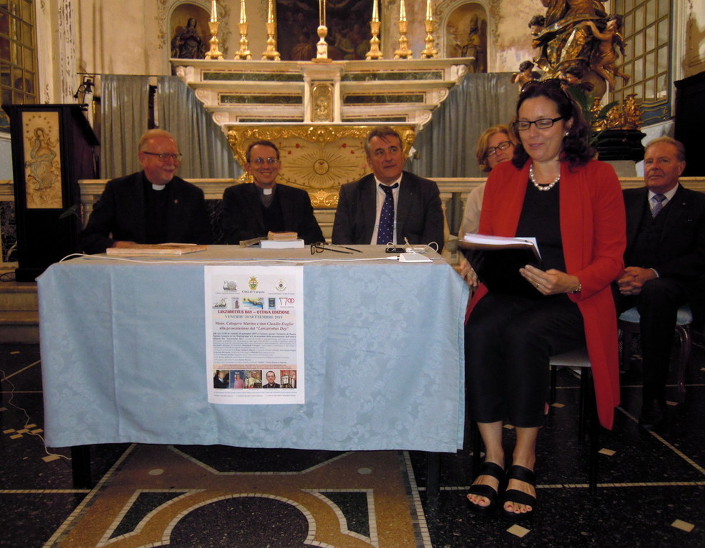 Il secondo alle ore 21:00 presso l’Oratorio N.S. Assunta, è proseguito con gli stessi relatori e locali Autorità, con la presentazione del “Lanzarottus Day” 2019 ad altro pubblico appositamente invitato, con l’intervento del nostro Vescovo Mons. Calogero Marino, del parroco della Collegiata di Sant’Ambrogio don Claudio Doglio e della Madrina di questa edizione, il Sindaco di Celle Ligure Caterina Mordeglia e dell’Assessore alla Cultura Giorgio Siri. Un coinvolgente incontro che ha appassionato tutti, sia i relatori e sia il folto pubblico intervenuto nella storica e centrale chiesa di N.S. Assunta, affidata alle cure dell’omonima Confraternita che, a fine convegno sul tema “Lanzarotto Malocello e la sua impresa: riflessioni a tuttotondo”, prima di invitare i presenti a partecipare alla cerimonia del giorno dopo, ha offerto un rinfresco e augurato a tutti la buonanotte.