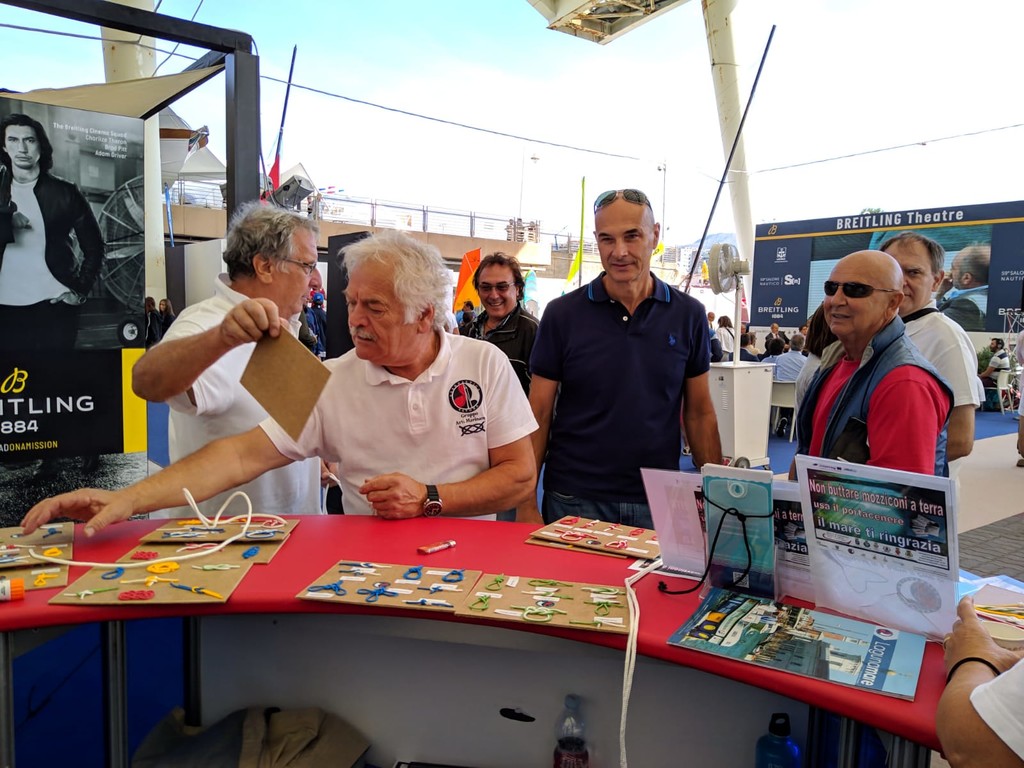 L'affluenza di pubblico è stata tanta, pochi bimbi e tanti adulti esigenti ma attenti, che con pazienza aspettavano il loro turno per imparare a fare i nodi marinareschi. Fra le tante persone anche espositori di marchi famosi, che non hanno lesinato i complimenti per il quadretto con i nodi offerto in regalo dai soci del Gruppo Arti Marinare a chi seguiva le loro lezioni estemporanee. Sono stati molto apprezzati anche i nodi di più difficile esecuzione e i nodi multicolori, oltre ai classici già conosciuti.