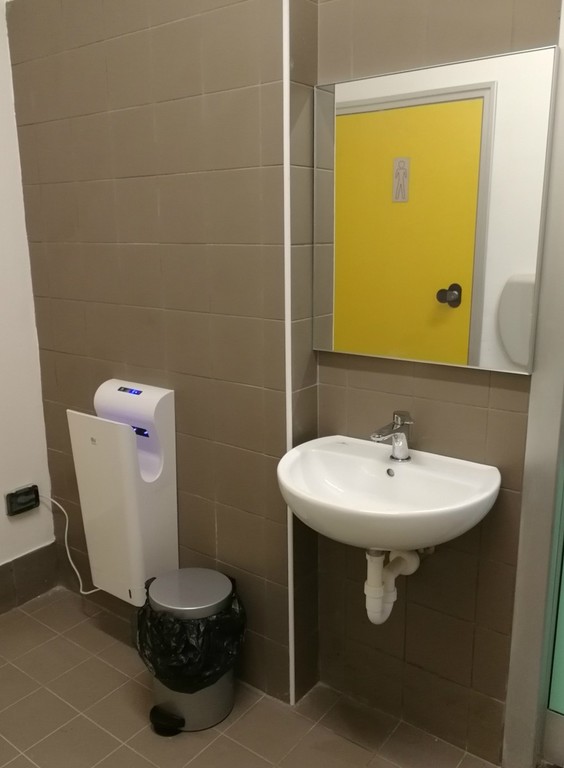 Il cantiere ha visto la rimozione dei vecchi sanitari e la demolizione delle tramezze in muratura, della pavimentazione e del rivestimento. I nuovi servizi igienici, due dei quali a servizio di persone diversamente abili, verranno realizzati mediante l'installazione di box Wc e porte in laminato stratificato, che garantiscono alla struttura una migliore gestione.