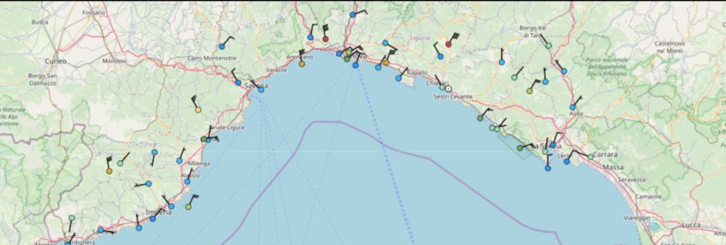 Il mare alla boa di Capo Mele è mosso con temperatura dell’acqua di 22.1 gradi. Le temperature minime sono in calo: il valore più basso a Poggio Fearza (Imperia) con 2.5, ma sono da segnalare anche i 3.9 di Pratomollo (Genova) e i 4.2 di Monte Settepani (Savona) (nello spezzino 7.0 a Casoni di Suvero). La minima più alta, 20 gradi, ad Alassio.