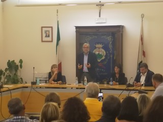 Sala consiliare "Augusto Rembado" di Pietra Ligure gremita per l'incontro con i parlamentari di Italia Viva, la nuova forza politica nata dopo l'addio di Matteo Renzi al Partito Democratico.