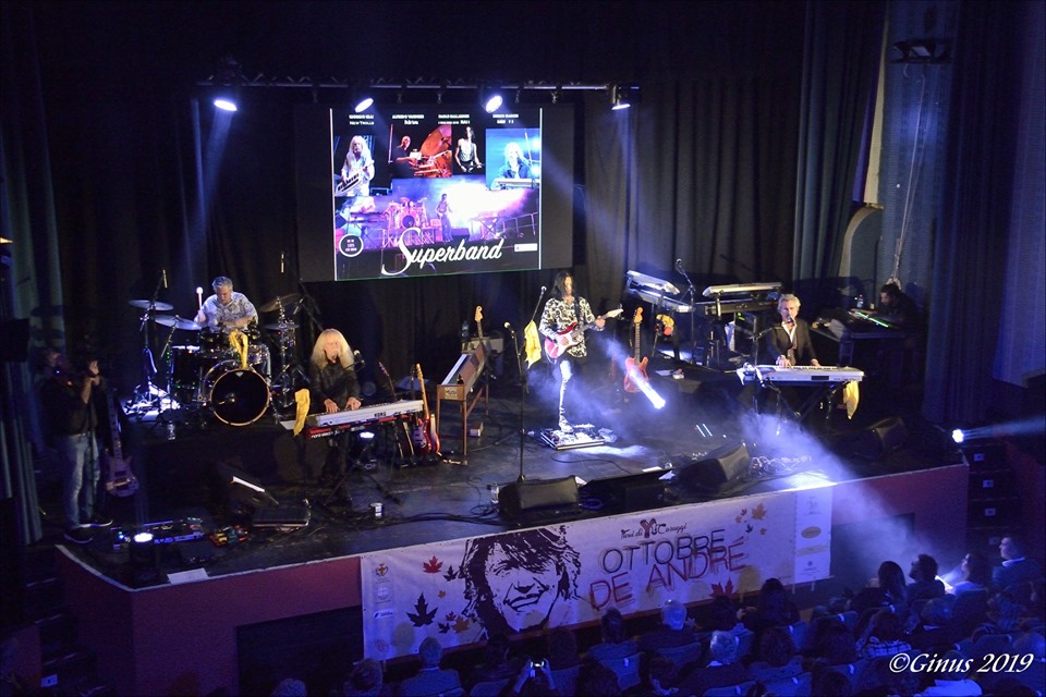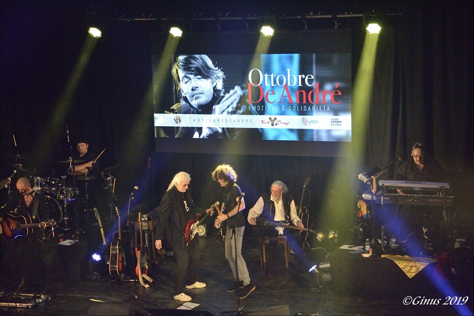 In effetti sul palco del Teatro Ambra si sono succeduti – in un tripudio di luci, colori ed effetti speciali musicisti straordinari: la Superband (Giorgio Usai, Alfredo Vandrise, Enrico Bianchi, Paolo Ballardini), Paolo Vallesi e la “strana” coppia Shel Shapiro e Maurizio Vandelli che, accompagnati dalla band di Love & Peace, hanno divertito, commosso ed emozionato un pubblico caloroso e partecipe. Ottobre De André continua.