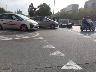 Il sinistro è avvenuto intorno alle 13, coinvolte due auto ed uno scooter