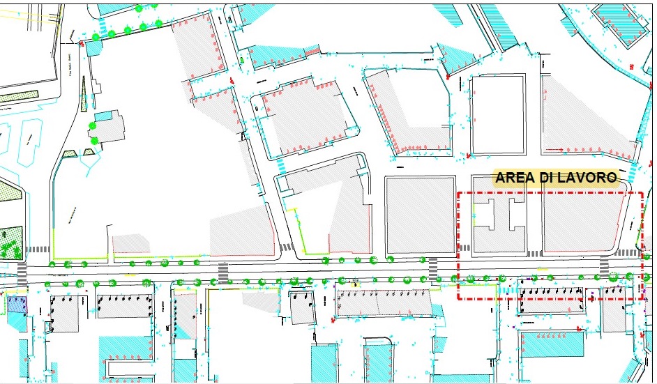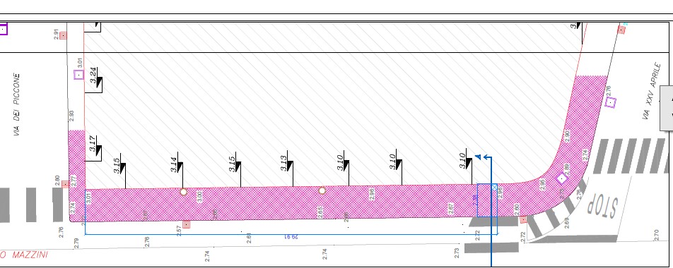 Gli interventi riguardano il rifacimento totale del marciapiede nel tratto compreso tra Via XXV Aprile e Via dei Piccone e l'abbattimento dei rialzi del tratto compreso tra via dei Piccone e via Bicchio.