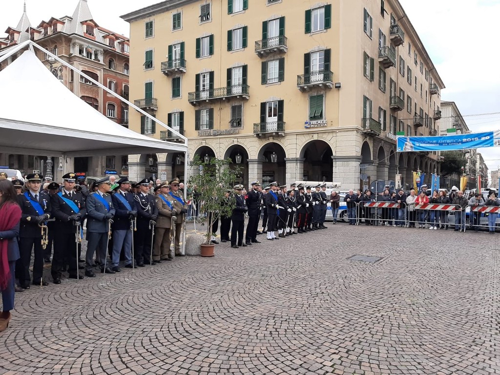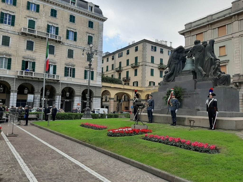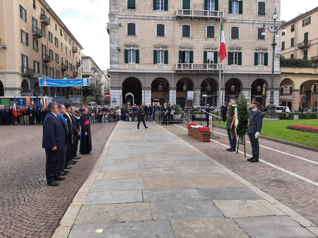 Si è svolta questa mattina in Piazza Mameli a Savona, la celebrazione del 4 novembre “Festa dell’Unità Nazionale e Giornata delle Forze Armate”, il 101esimo anniversario della fine della Prima Guerra Mondiale, alla presenza del Prefetto di Savona Antonio Cananà, il Questore Giannina Roatta, del sindaco di Savona Ilaria Caprioglio, del presidente della Provincia Pierangelo Olivieri, delle Autorità Militari, Civili e Religiose, dei Sindaci dei comuni della provincia, delle Associazioni Combattentistiche, Patriottiche e d’Arma.