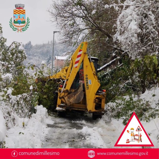 "La nevicata di questa notte ha principalmente causato problemi legati alla caduta degli alberi sotto il peso della neve bagnata". Lo comunica in una nota sulla propria pagina Facebook il comune di Millesimo.