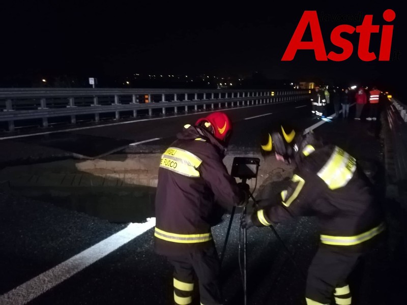 In seguito al perdurante maltempo, pochi minuti fa si è aperta una grossa voragine in un tratto astigiano dell’autostrada Torino-Piacenza-Brescia, in direzione Torino, all’altezza del km. 21+700, corrispondente alla zona di Villafranca d'Asti