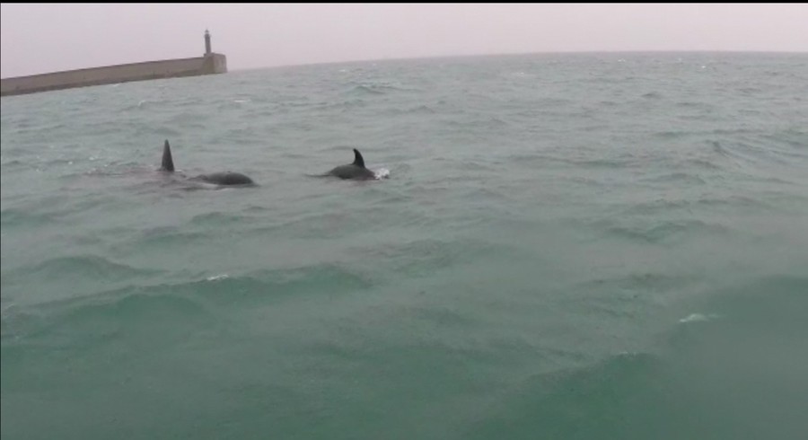 Nella giornata di ieri alcuni pescatori appena fuori la zona porto di voltri hanno avvistato un piccolo pod di orche (Orcinus orca).