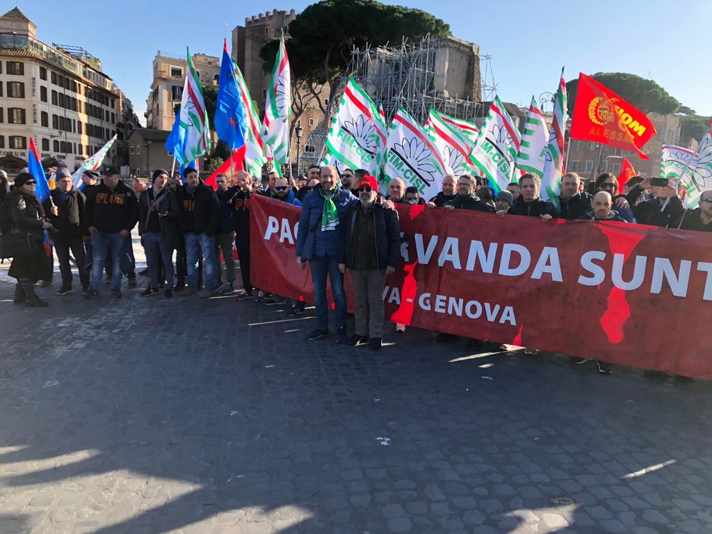 Questa mattina a Roma, in occasione della mobilitazione e dello sciopero del personale di Arcelor Mittal, circa 1000 operai, sono presenti anche i lavoratori della Sanac di Vado Ligure, azienda dell'indotto Ex Ilva dove sono presenti 80 dipendenti.