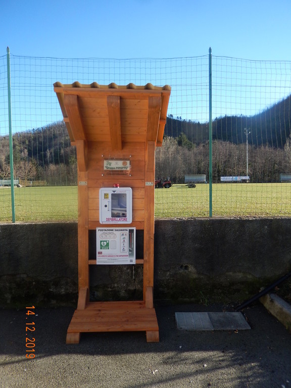 Il dispositivo, che sarà a completa disposizione della comunità valbormidese in caso di bisogno, è stato installato nei pressi degli impianti sportivi, al riparo da un'elegante struttura in legno posta a fianco della recinzione del campo da calcio.